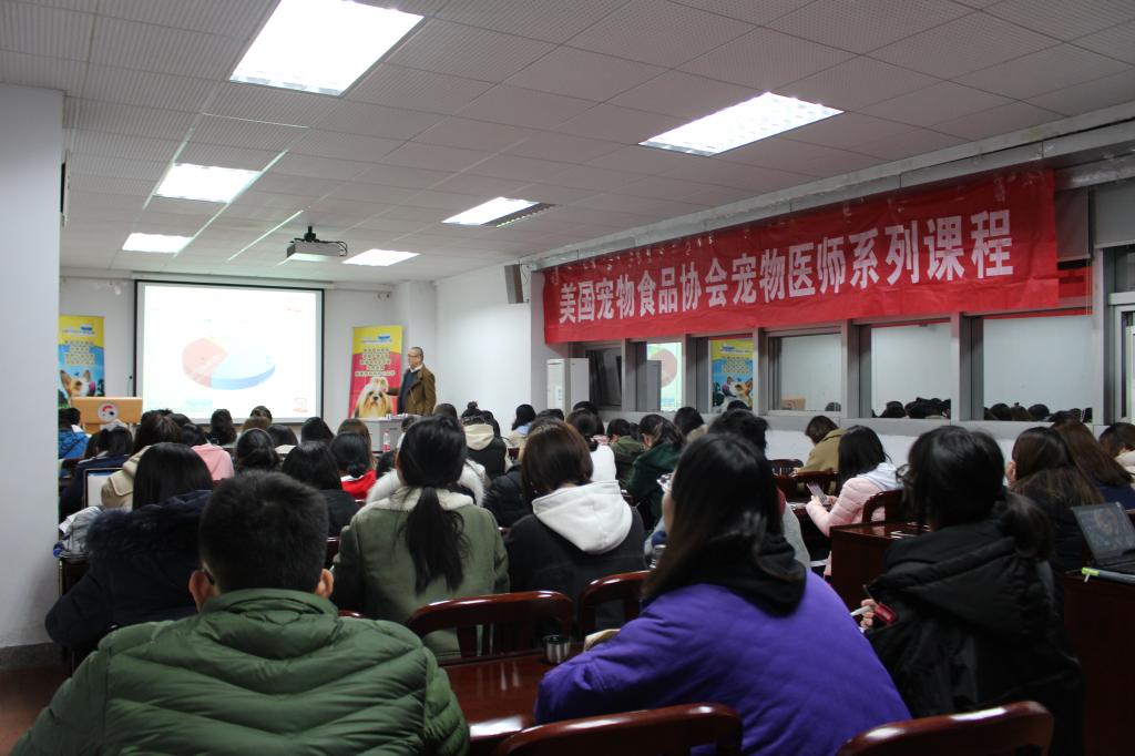3月22日晚七点,美国宠物食品协会宠物医师系列课程在南京农业大学逸夫楼3044顺利展开,我们有幸邀请到了南京艾贝尔宠物有限公司的职业兽医师马庆博老师,给同学们带来了一堂关于宠物营养需求的专题讲座。
