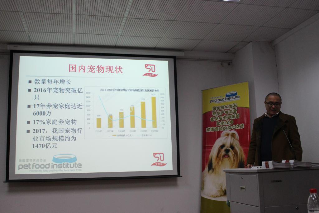 讲座的开始,马老师给同学们简单的介绍了宠物的重要性、宠物伴侣的需求市场、国内宠物的现状和宠物产业的结构几个方面,从而引出了本次讲座的主题——宠物的营养需求。