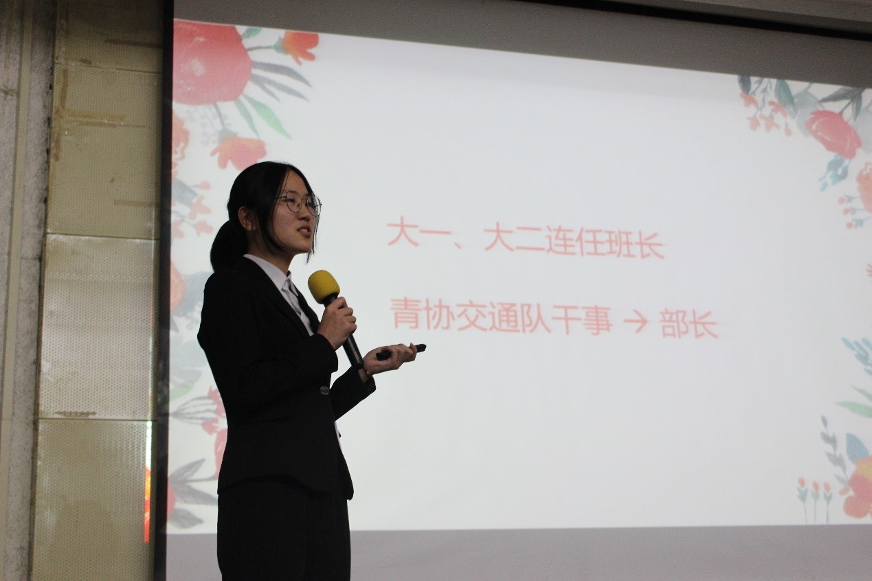 许秋华作为现任院学生会主席,向我们展示了学生工作对她个人能力的提高,以及自己在文体方面获得的荣誉。