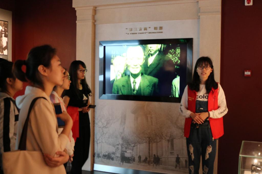 4月21日上午,我院积极分子赴梅园新村进行红色基地主题参观活动。同学们跟随讲解员进入馆内参观,一楼展厅中间是一块大型的汉白玉浮雕,上面刻着当时代表团成员和工作人员的群像,画面呈现“S”型,象征着中国共产党员走过的曲折漫长的道路和对我党的事业后继有人的深切期盼。汉白玉浮雕四周陈列着国共两党重庆谈判和南京谈判的文献史料,照片及部分实物。二楼展厅陈列当年中共支持和发展爱国民主运动的照片和史料。