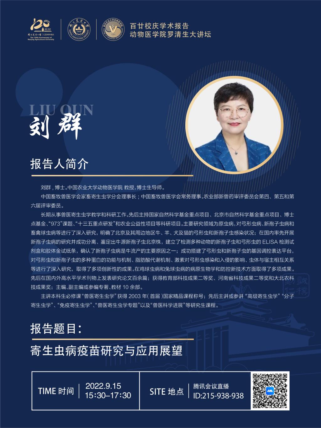 【百廿校庆学术报告】学院罗清生大讲坛-寄生虫病疫苗研究与应用展望