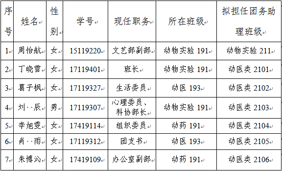 经过个人申报、材料审核、结构化面试,现将2021级新生班级团务助理推荐名单公示如下: