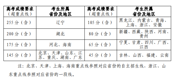 3.学生高考成绩需达到以下要求: