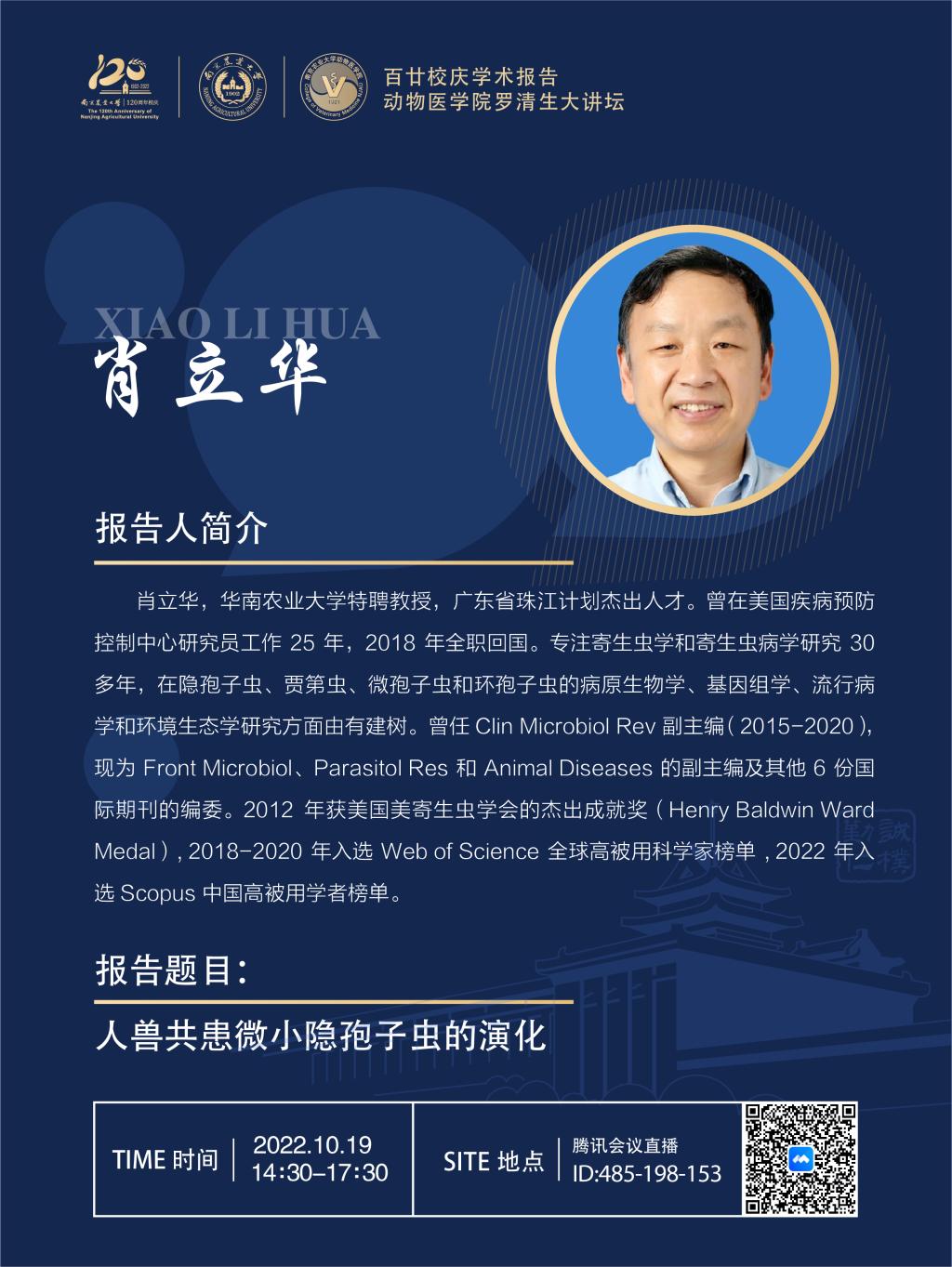【百廿校庆学术报告】学院罗清生大讲坛-人兽共患微小隐孢子虫的演化