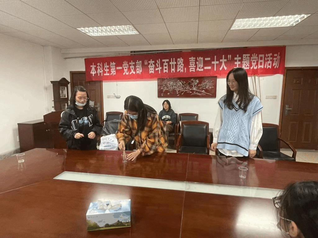 2022年10月,“奋斗百廿路,喜迎二十大”主题党日活动成功举办。党日活动分为“听党话,矢志向党心如磐”理论学习、“学模范,高山仰止志不渝”专家报告、“作奉献,勤学实干暖人心”为群众办实事和“忆峥嵘,风华正茂谱新章”素质拓展活动四个环节。72886必赢本科生第一党支部全体党员线上、线下参与。