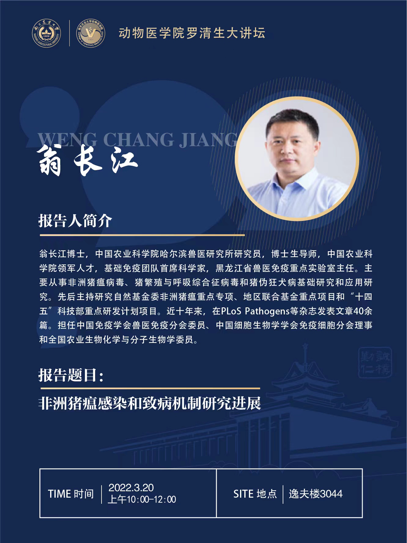 【学术报告】学院罗清生大讲坛-非洲猪瘟感染和致病机制研究进展