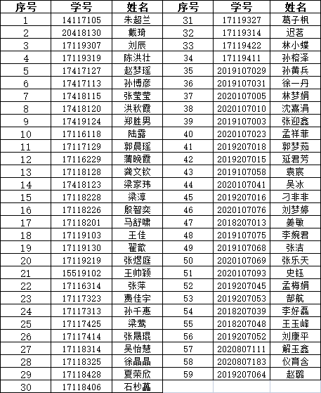 根据学院学生党员发展工作安排,结合个人思想政治现实表现等综合情况,经由本人申请、各支部推选、党支部答辩、党员代表投票表决等环节,我院党委研究决定,拟发展朱超兰等59名同志为中共预备党员,现公示如下: