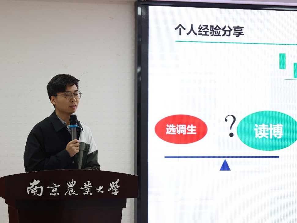 刘水平是2023年南京农业大学“瑞华杯”最具影响力研究生获得者,曾担任学院研究生会主席,荣获两次研究生国家奖学金。刘水平表示兽医专业的我们要夯实专业知识,领悟兽医文化,要从社会问题出发,创新科学研究;师兄还分享了自己的创业经历,做到了创新创业守初心;最后,他给大家一些科研小建议:每周定目标以及阅读研究文献、每月总结实验进展和坚持一个爱好。