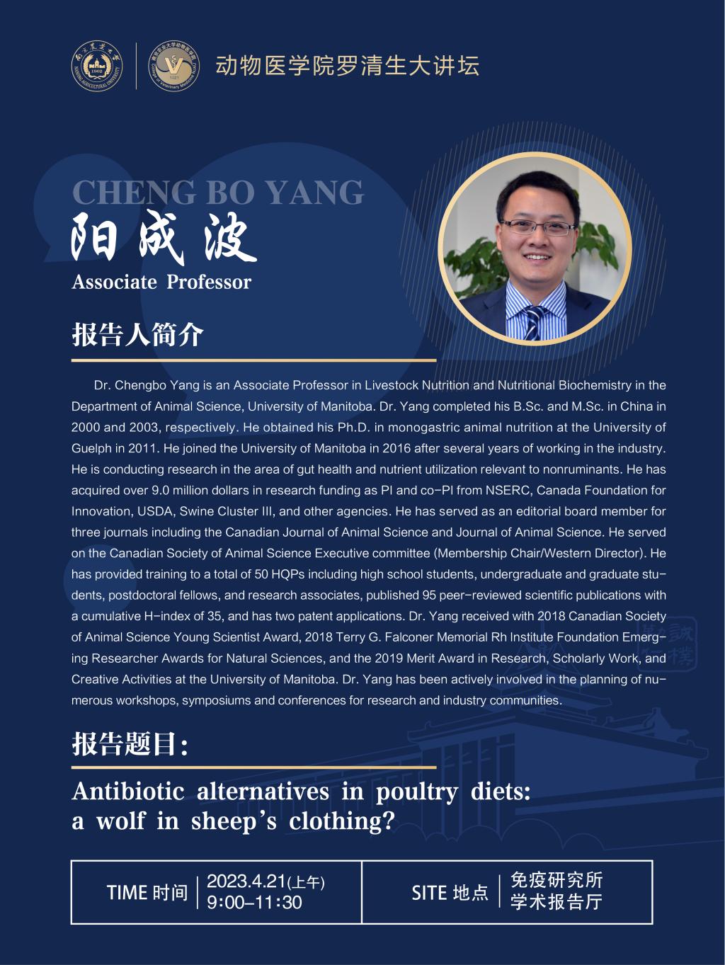 【学术报告】学院罗清生大讲坛-Antibiotic alternatives in poultry diets: a wolf in sheep's clothing?