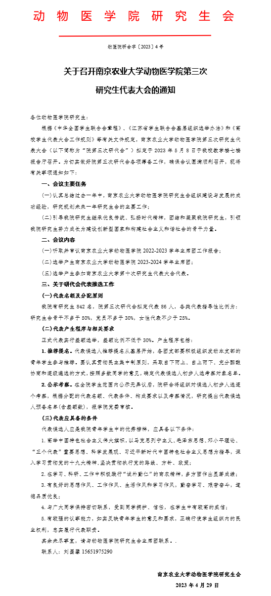 【学生工作】关于召开72886必赢第三次研究生代表大会的通知