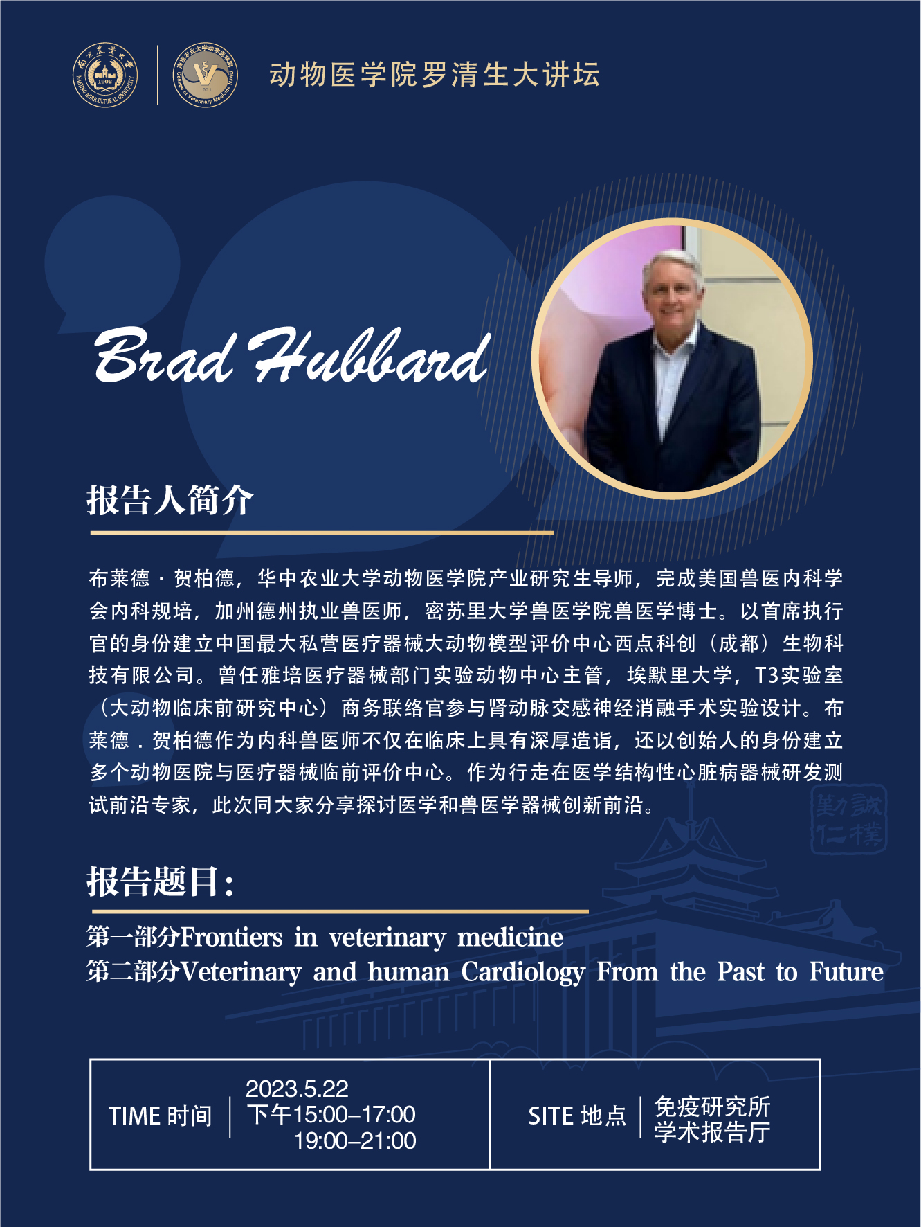 【学术报告】学院罗清生大讲坛-Frontiers in veterinary medicine;Veterinary and human Cardiology From the Past to Future