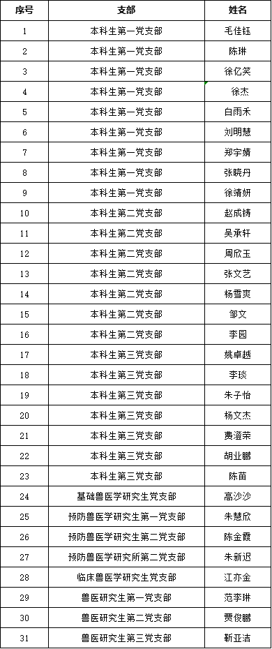 根据《发展党员工作实施细则》有关规定,经基层党支部考察、72886必赢党委预审,拟接收毛佳钰等31人为中共预备党员。现予以公示(排名不分先后):